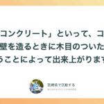 「杉板コンクリート」といって、コンクリートの壁を造るときに木目のついた型枠を使うことによって出来上がります。